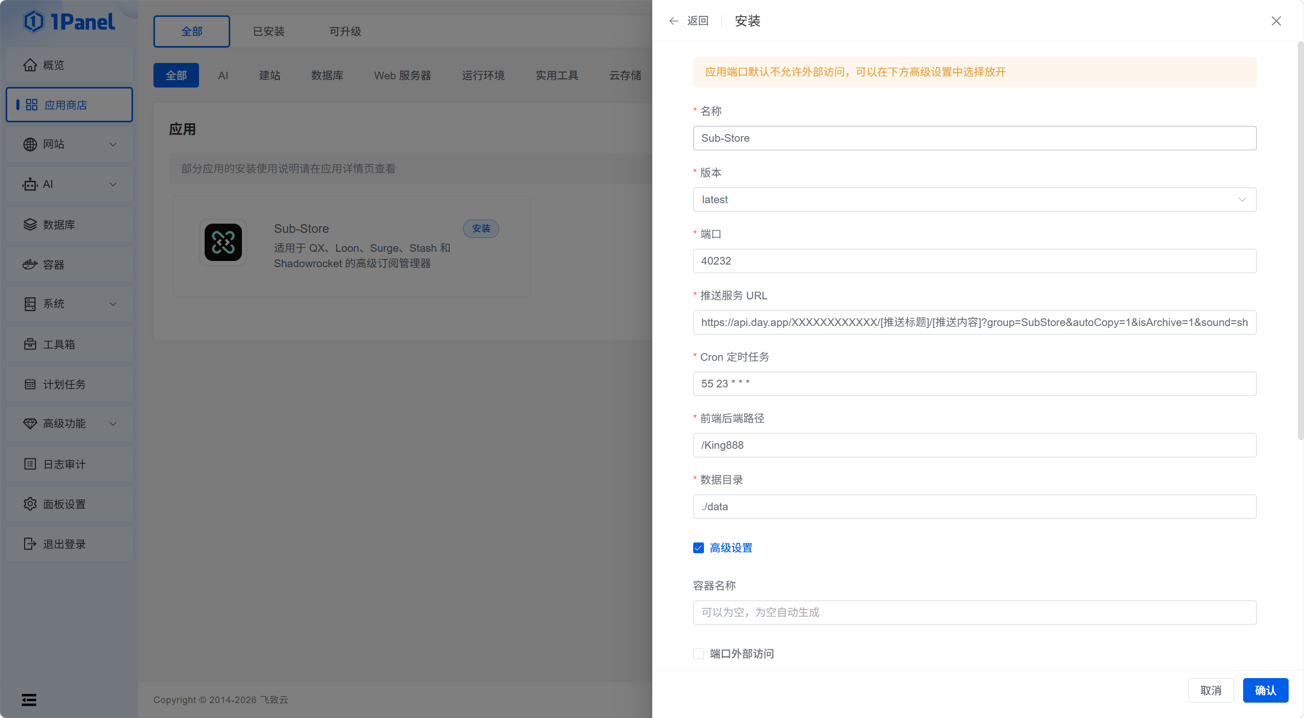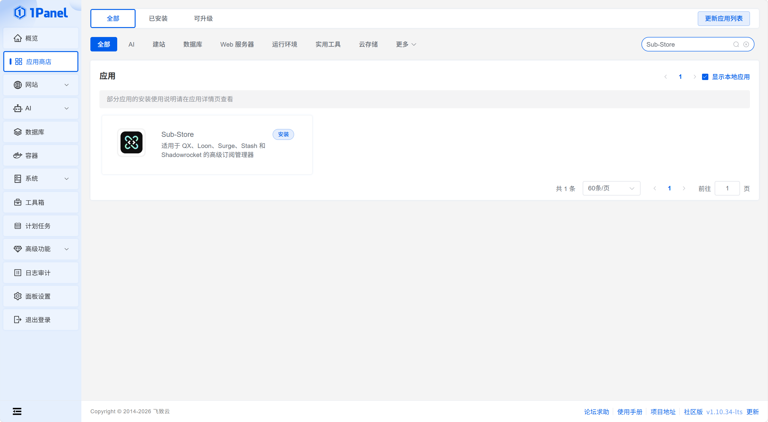 1Panel原本自带的应用商店较少,需要自行添加第三方库