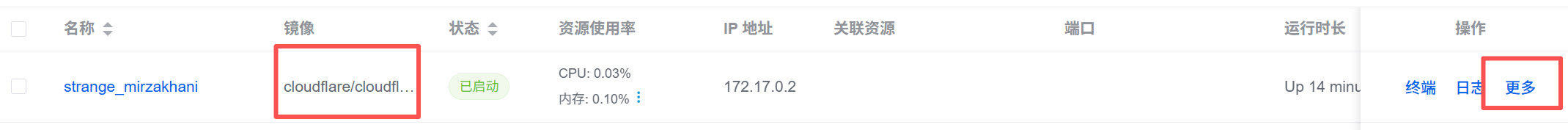 点击完成后,我们还需要去1Panel控制面板的容器.找到刚刚的cloudflare的docker容器,如果分辨不出来可以看镜像那一栏,一般都是cloudflare/cloudflared:latest,找到后点击右侧的更多->编辑,下滑找到重启规则,找到一直重启,这样当你的主机在重启后,该服务将会自动启动