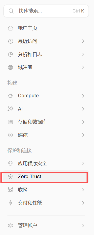 访问https://cloudflare.com/(根据自己的情况来),登陆完成后,点击左侧的Zero Trust
