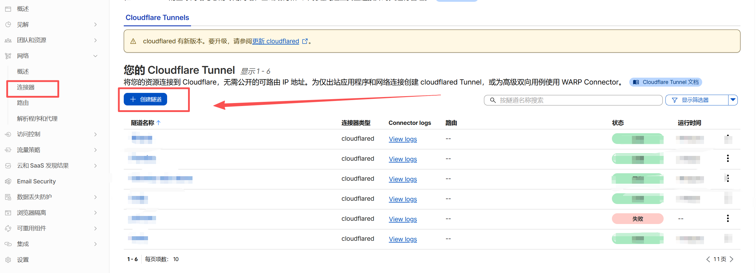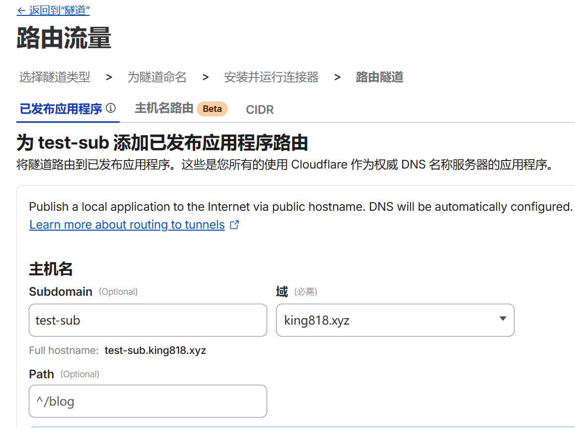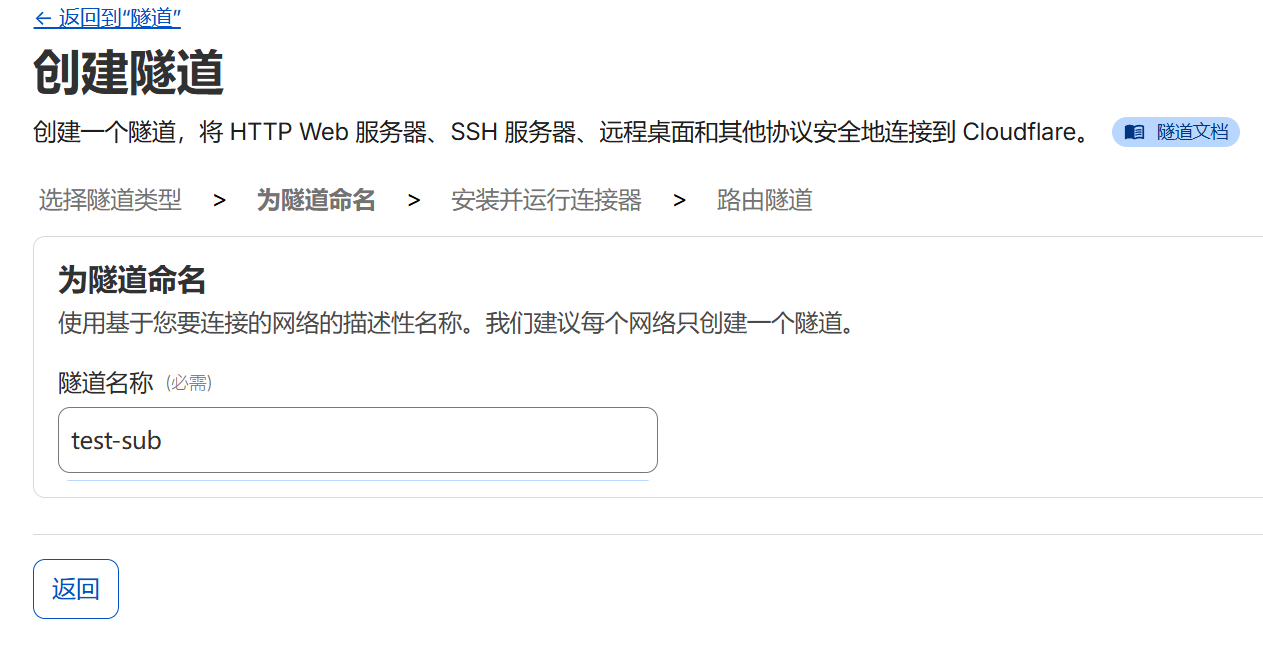 隧道类型我们选Cloudflared,隧道名称随便取一个自己记得住的,我这里使用"test-sub"为例