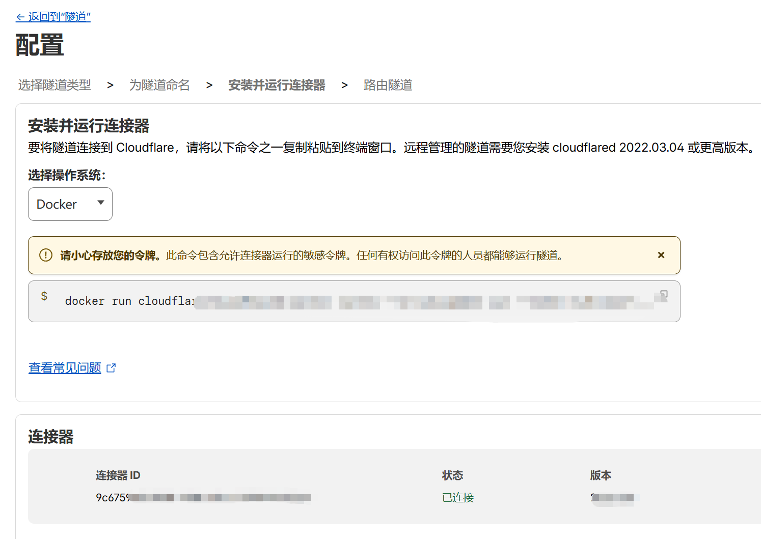 且在Cloudflare上下方显示出连接器id已连接的时候就可以下一步了