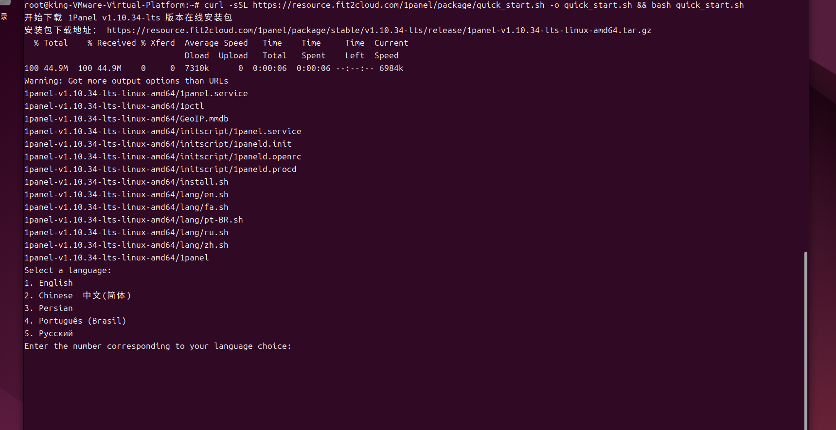 curl -sSL https://resource.fit2cloud.com/1panel/package/quick_start.sh -o quick_start.sh && bash quick_start.sh